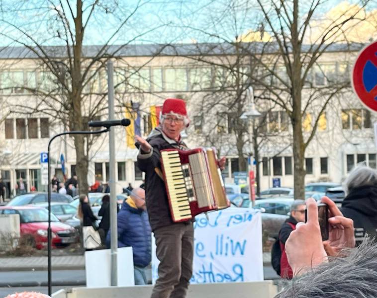 Zahlreiche Menschen mit einem breiten Alterssprektrum folgten der Einladung der Initiative. Es gab interessante Wortbeiträge, manchmal wurde das Wort, der Gesang oder der Merkzettel vom böigen Wind etwas verweht. Alles blieb friedlich.
