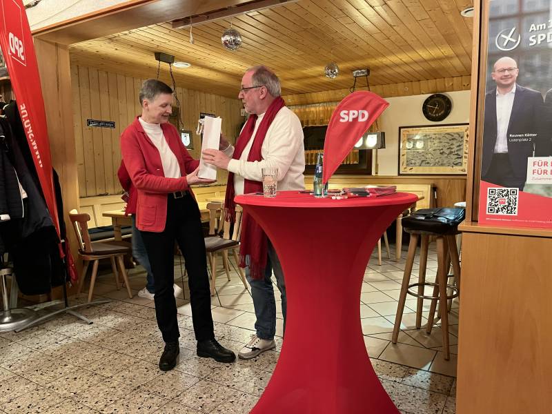 Marion Götz beim Vortrag, Anja Singer hört zuPolitischer Aschermittwoch bei der SPD: „Wir tun es, weil wir glauben daran, dass  Kommunalpolitik etwas bewegen kann“Thomas Görlich begrüßt Matthias Körner, MdLThomas Görlichs kleine WahlkampfsatireThomas Görlich erklärt die WahlplakateProst 1Prost 2: Anja Singer bei ihrer Rede ohne bütt'