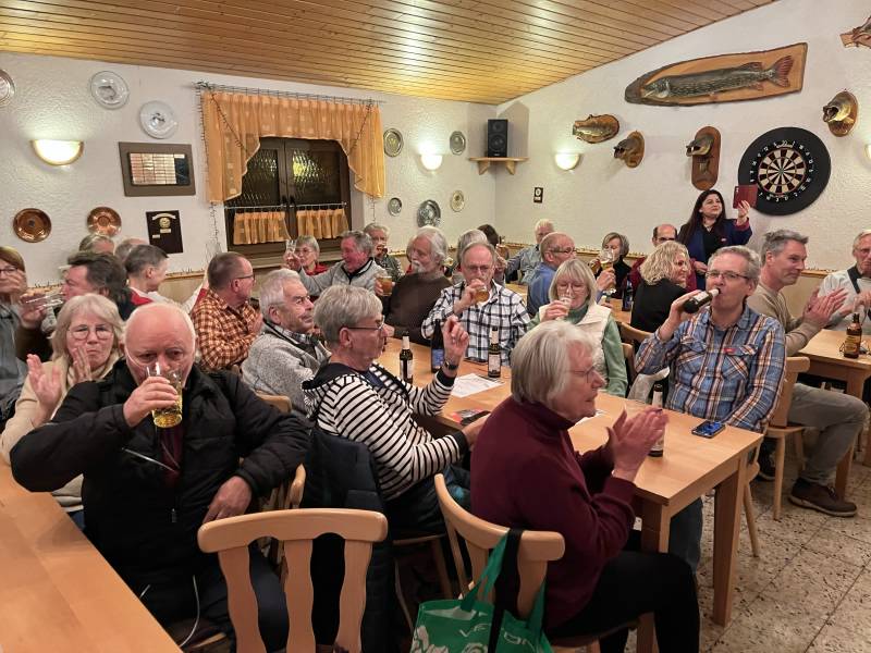 Gute Stimmung im Anglerheim beim Heringsessen mit Marion Götz, Anja Singer und Thomas Görlich