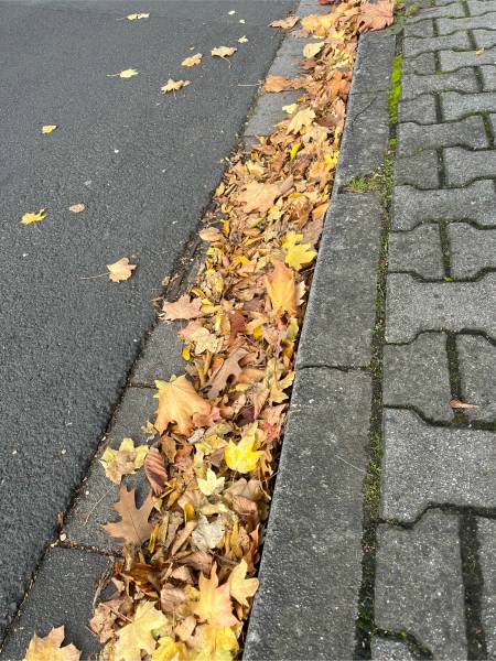 Rutschgefahr - Gehwegreinigung erforderlichRegenwasser läuft schlecht ab - Rinnsteinreinigung erforderlichZigarettenkippen sind giftig - nicht einfach wegwerfenAnja Singer, Fraktionsvorsitzende